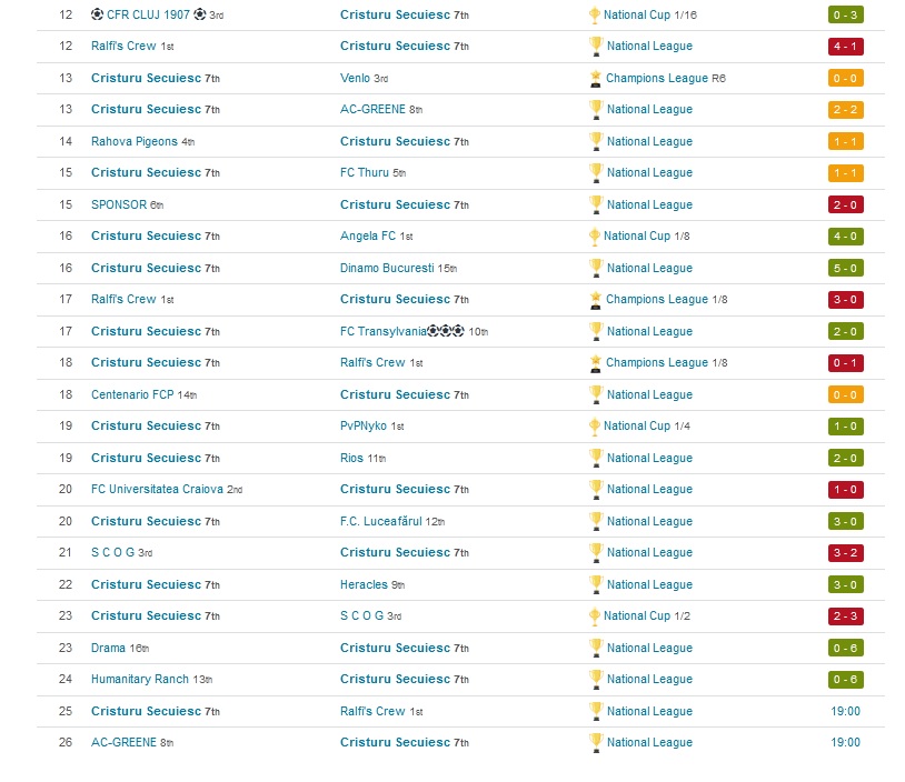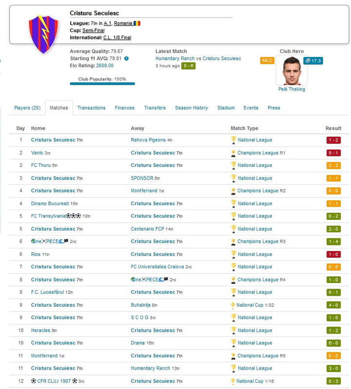 on 24-09-2025 22:16:35 (1 month ago) And if it's still the evening of challenges!!! I ask once again the administration how this "CRISTURU sECUIESC" BUG, which is an insult to Romanians and the Romanian championship with the name of a Hungarian team, abandoned because its salaries were too high by the manager... to score points in all competitions and steal the prizes of the correct players and turn them into general funds!!! Once again I ask what we, correct players, did wrong and who put money into this game... compared to an abandoned team that became a bot with AVQ 80,