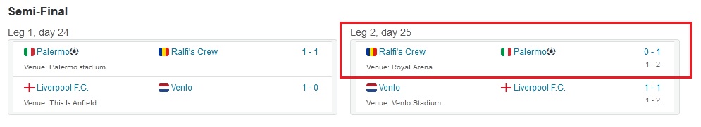 on 25-09-2025 13:26:00 (1 month ago) Yeah....i got eliminated in semifinals in CL by Palermo. damn...what a waste :))))))))) Tragedy :))) edited on 25-09-2025 13:26:12 (1 times)